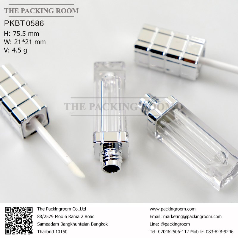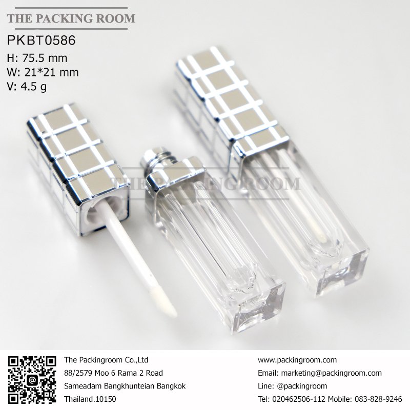 DESCRIPTION: บรรจุภัณฑ์ขวดลิปจิ้มจุ่มทรงเหลี่ยมฝสีเงินลายสี่เหลี่ยมขวดใสขนาดสั้น ตัวแปลงด้วยวัถุดิบ ABS รับเข้ากับริมฝีปาก ช่วยให้เกลี่ยทาเนื้อลิปได้ดี มีคุณสมบัติทนต่อสารเคมี ทนต่ออุณาภูมิสูง เหมาะสำหรับเป็นบรรจุภัณฑ์ลิปกลอส(Lip Gloss Container) บรรจุภัณฑ์ลิปแมท(Lip Matte Container) บรรจุภัณฑ์ลิปติ้น(Lip Tint/Lip Stain Container)